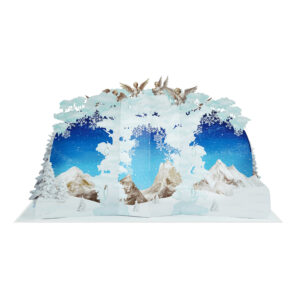 Nativity 5 Pop-Up Card is a beautifully handcrafted Christmas greeting showcasing a vintage-style Nativity scene in intricate 3D laser-cut design. Each card unfolds to reveal the classic manger scene with Mary, Joseph, and the baby Jesus, framed by elegant decorative elements.