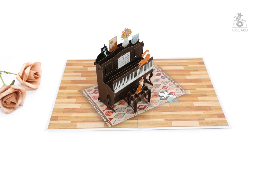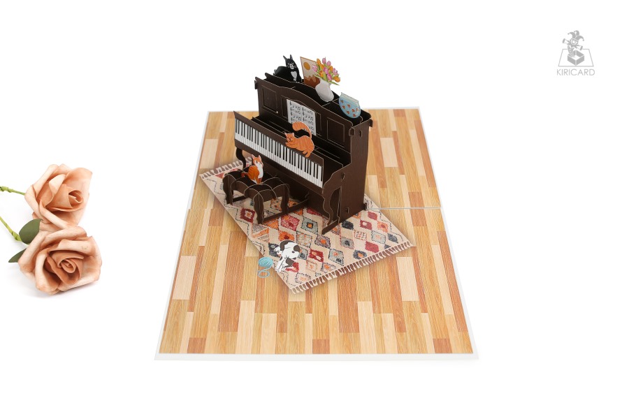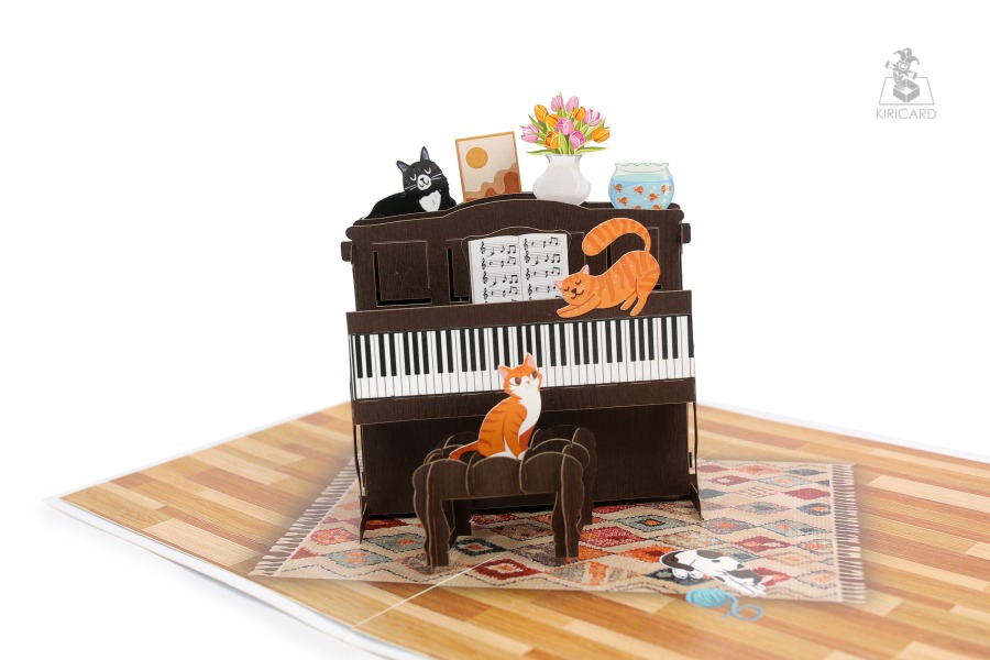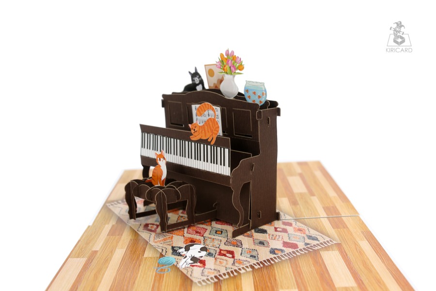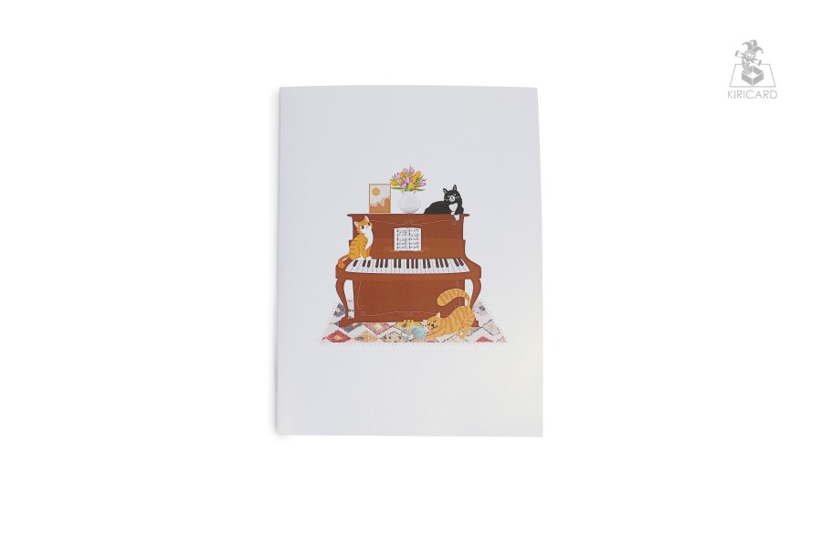 Piano with Cats Pop Up Card