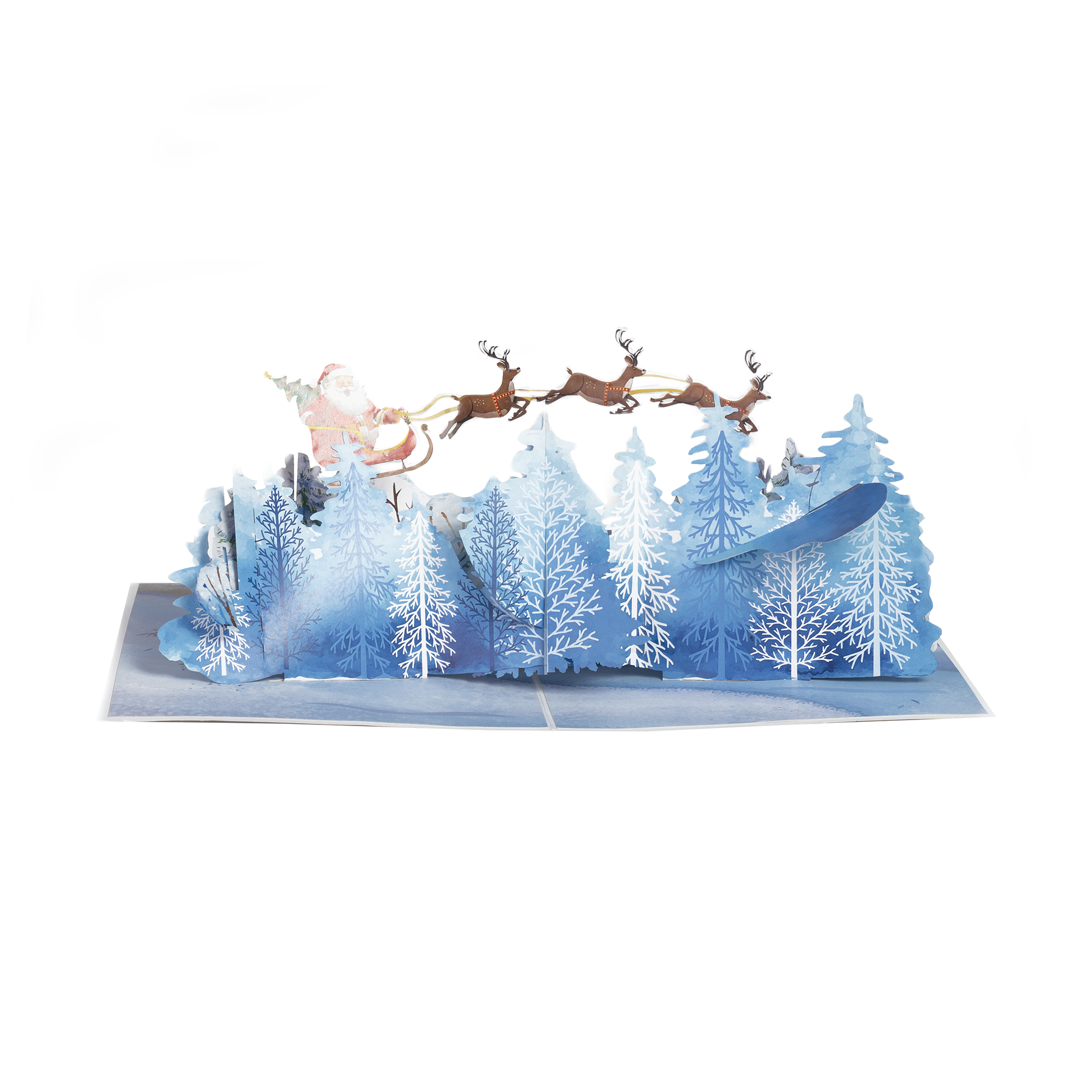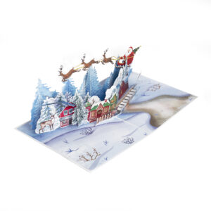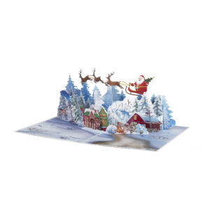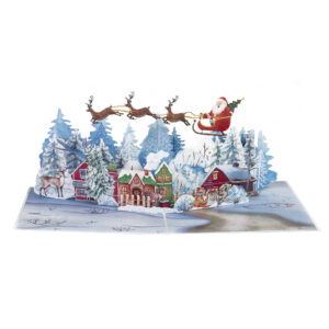 Experience the magic of winter with this card, ideal for those who adore snowy townscapes. Share the joy of Santa’s sleigh ride with your loved ones and make their Christmas memorable.